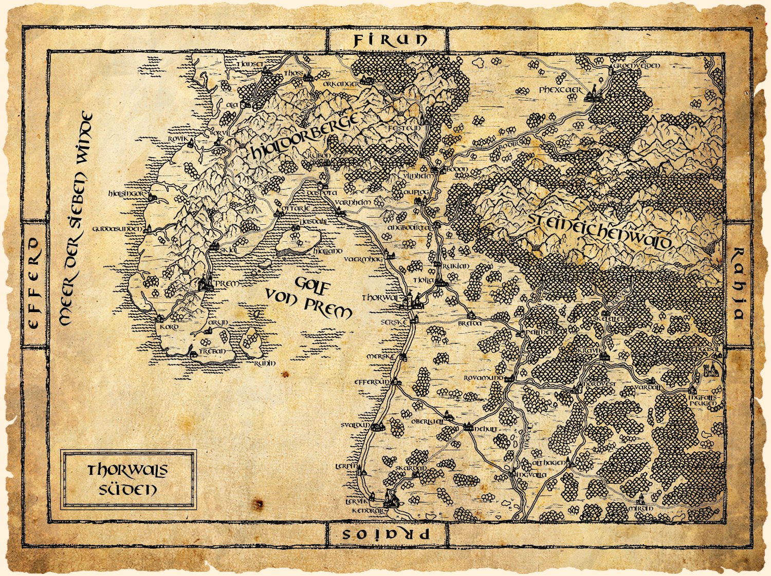Wo die Westwinde – der stetige Beleman und der stürmische Rondrikan – das Meer aufwühlen und über öde Hügel wehen, ist die Heimat dreier uralter aventurischer Kulturen: der Thorwaler, die vor über zweieinhalbtausend Jahren über das Meer der Sieben Winde kamen und die seit einigen Jahren ihre Traditionen wieder in den Mittelpunkt ihres Lebens stellen, der Nostrier und Andergaster, die sich früh von den Siedlern des Alten Reiches abspalteten und seitdem miteinander in steter Fehde liegen, und der ‚barbarischen‘ Gjalskerländer, die einst aus dem Zusammenschluss von Thorwalern und Norbarden entstanden und deren Überlebenskampf im kargen Hochland sie zu harten und ausdauernden Kämpfern und Kundschaftern gemacht hat. Überall präsent sind auch magische und mystische Kräfte; sei es in der Wind- und Wogenzauberei der thorwalschen Runenmagier, in den druidischen Steinkreisen und dem Wirken der Tierkönige in den Wäldern an Ingval und Tommel oder in der Beziehungen der Gjalsker Schamanen und Tierkrieger zu ihren mysteriösen Odûn. Doch nicht nur die Geschichte, die Traditionen und Mysterien bestimmen den Alltag in der Region: So sind die Thorwaler Seefahrer gleichermaßen als Plünderer gefürchtet wie als Händler willkommen, und während die zähen Gjalskaländer als Söldner in die Fremde ziehen, leben die Streitenden Königreiche von Fischfang und dem Reichtum der Wälder.